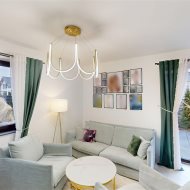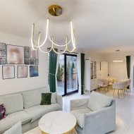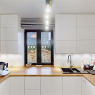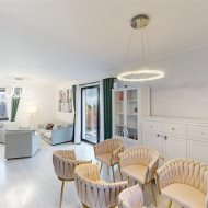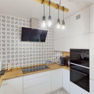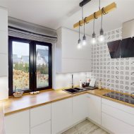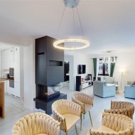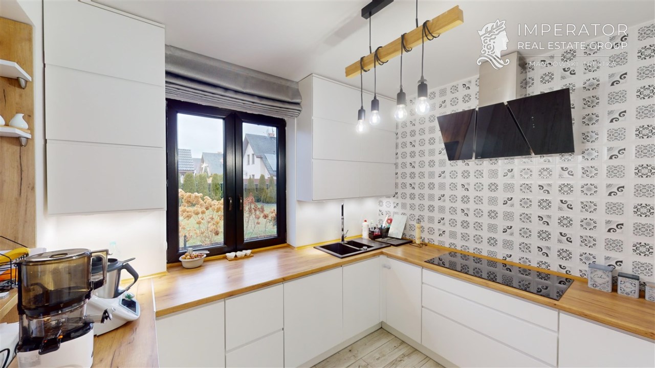 - SALON Z JADALNIĄ I KUCHNIĄ - serce strefy dziennej. Otwarta przestrzeń dobrze doświetlona, z możliwością wyjścia na taras. W salonie znajduje się kominek idealny na długie zimowe wieczory. Kuchnia w prawdzie otwarta, jednak usytuowana bocznie, co daje poczucie kontaktu jak i prywatności. Nowoczesna zabudowa kuchenna - doskonale wykorzystana przestrzeń dzięki meblom robionym na wymiar. Kuchnia w pełni wyposażona w dobrej jakości i sprawny sprzęt AGD