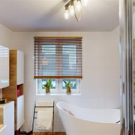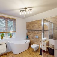 - ŁAZIENKA - z oknem; wyposażona w prysznic bezbrodzikowy, wannę wolnostojącą, podwieszane wc, lustro, umywalkę, liczne szafki