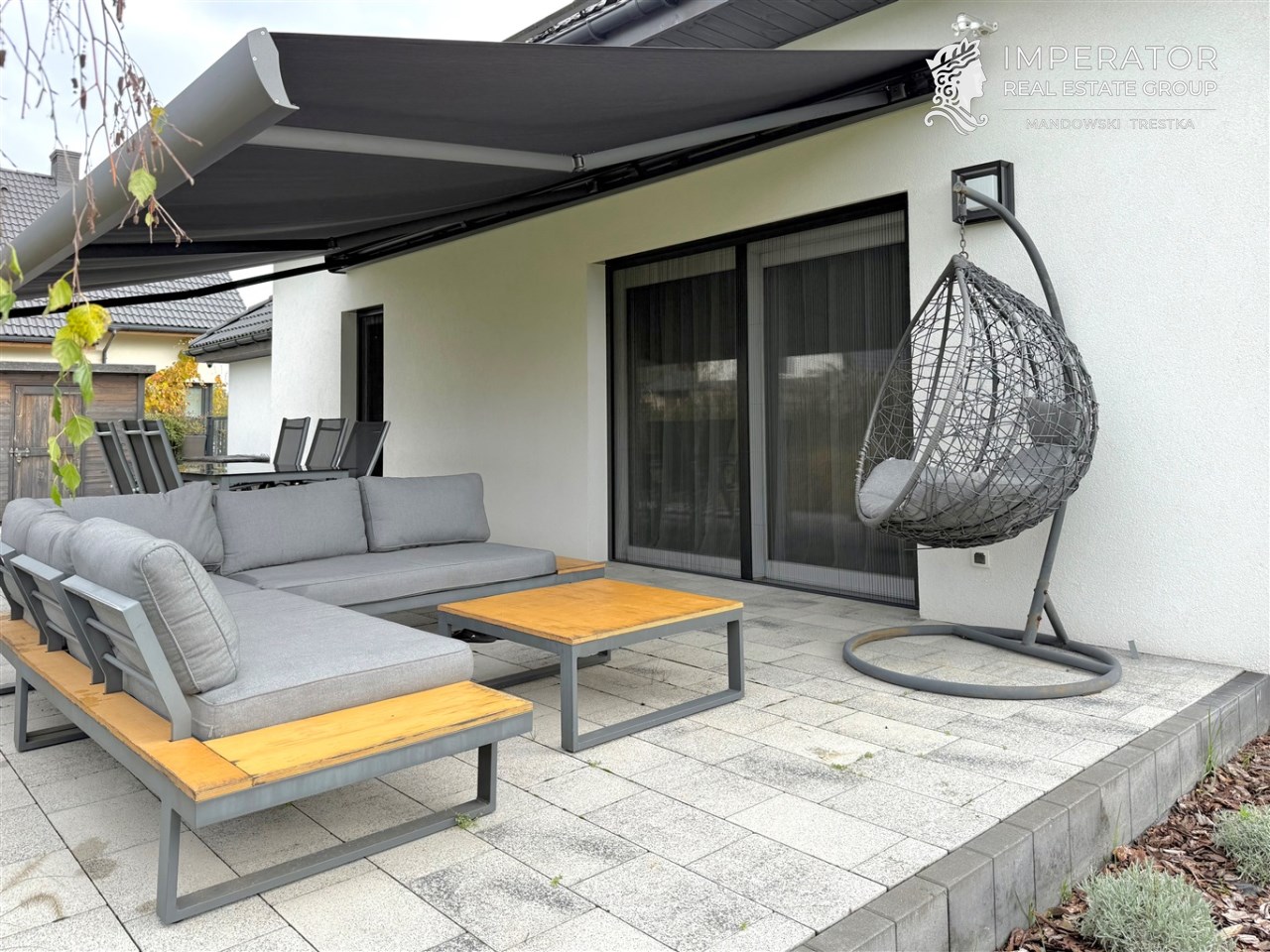 Właściciele dołożyli należytej staranności podczas wykończenia i wyposażenia całego domu. Materiały wykorzystane podczas budowy, meble oraz sprzęty w domu są najwyższej jakości. Całość wyposażenia widoczna na zdjęciach wraz z pełnym wyposażeniem tarasu pozostaje w cenie i jest dostępna dla nowych właścicieli.