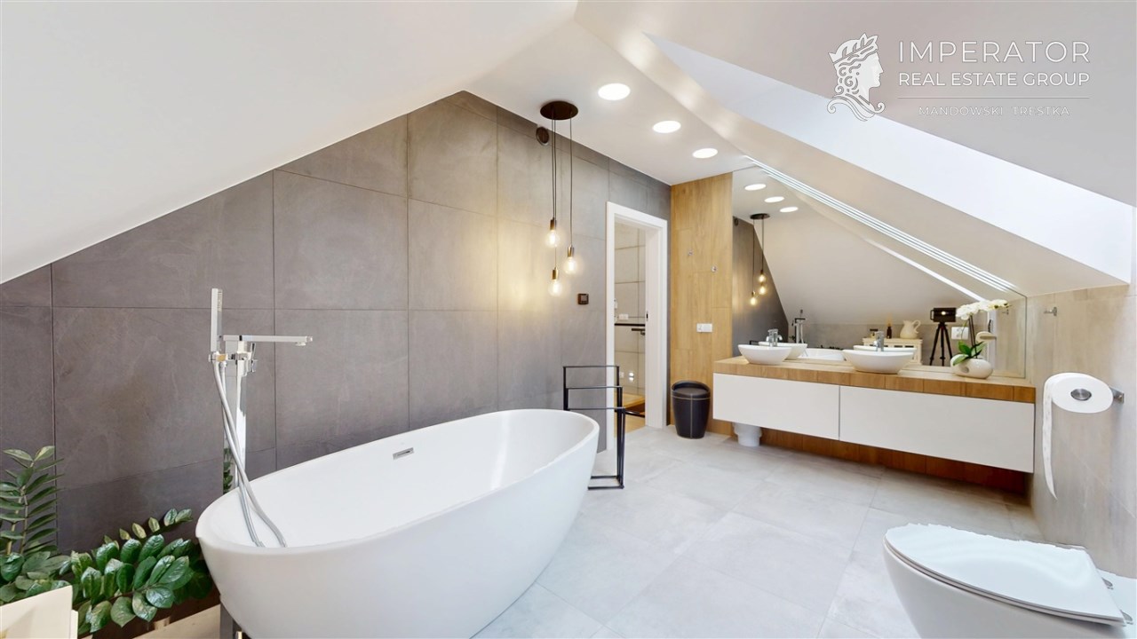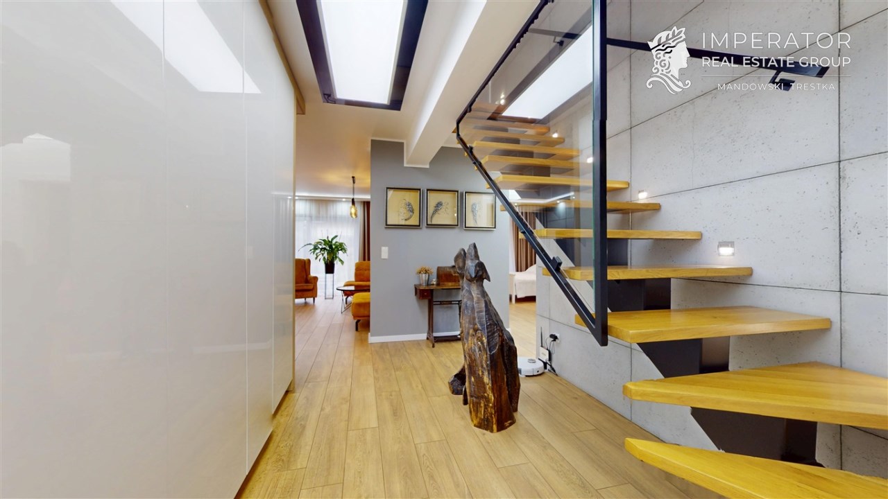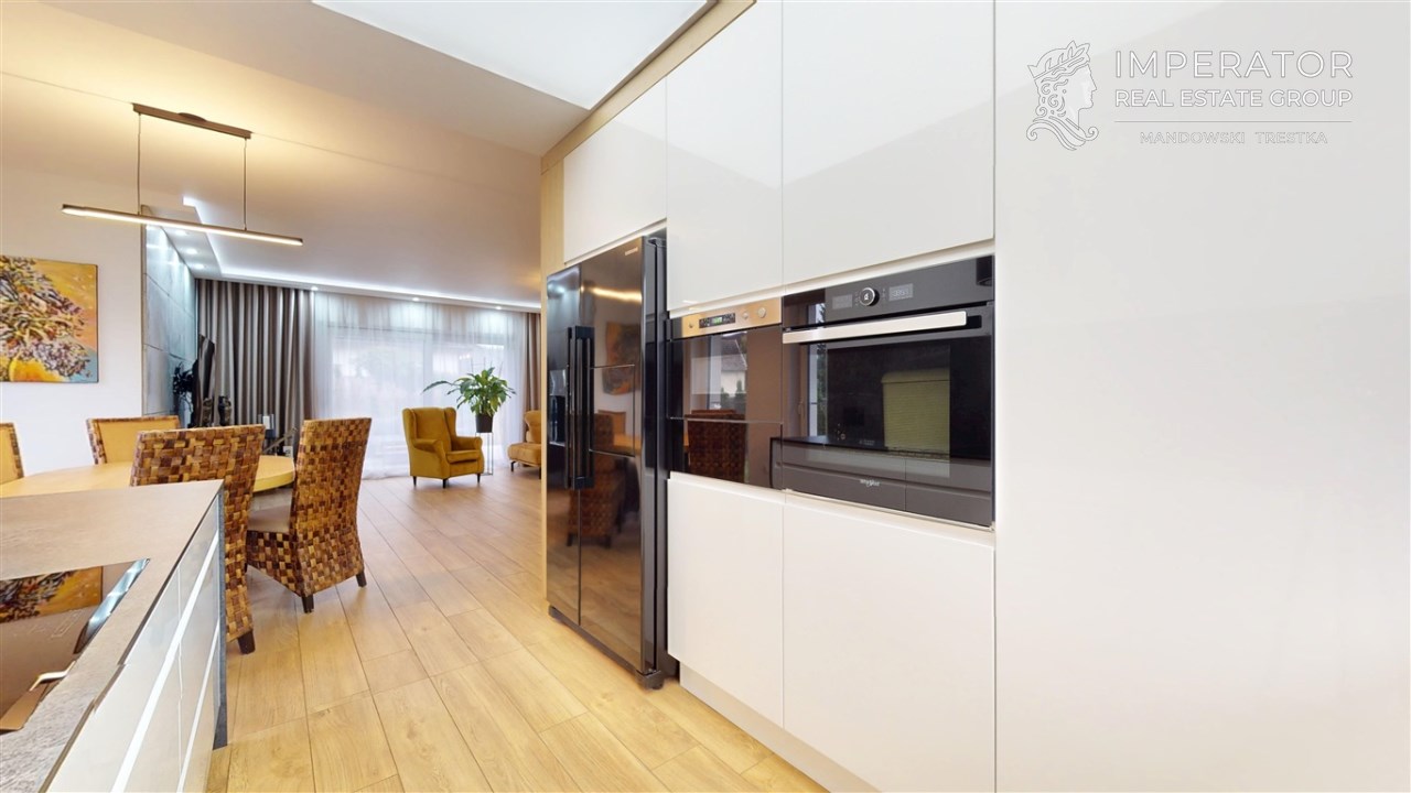 Wysokiej jakości materiały zostały wybrane z myślą o użytkowaniu nieruchomości w celach prywatnych przez właścicieli. Dom ten został wybudowany w 2019 r. i w pełni wykończony w 2020 roku. Cała przestrzeń nieruchomości jest funkcjonalnie zaprojektowana oraz bardzo dobrze doświetlona. Kuchnia jest w pełni wyposażona w najwyższej jakości sprzęty AGD. We wszystkich pomieszczeniach znajduje się wysokiej klasy podłoga, włoskiej produkcji.