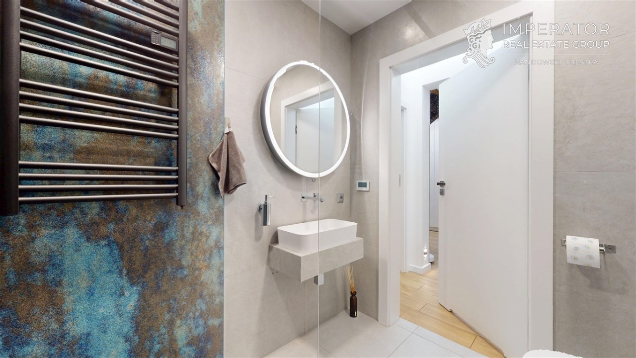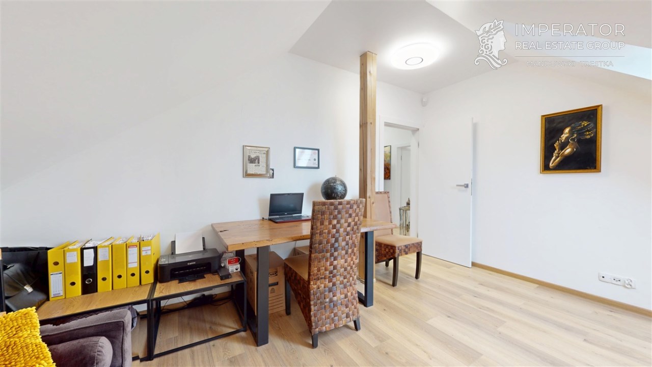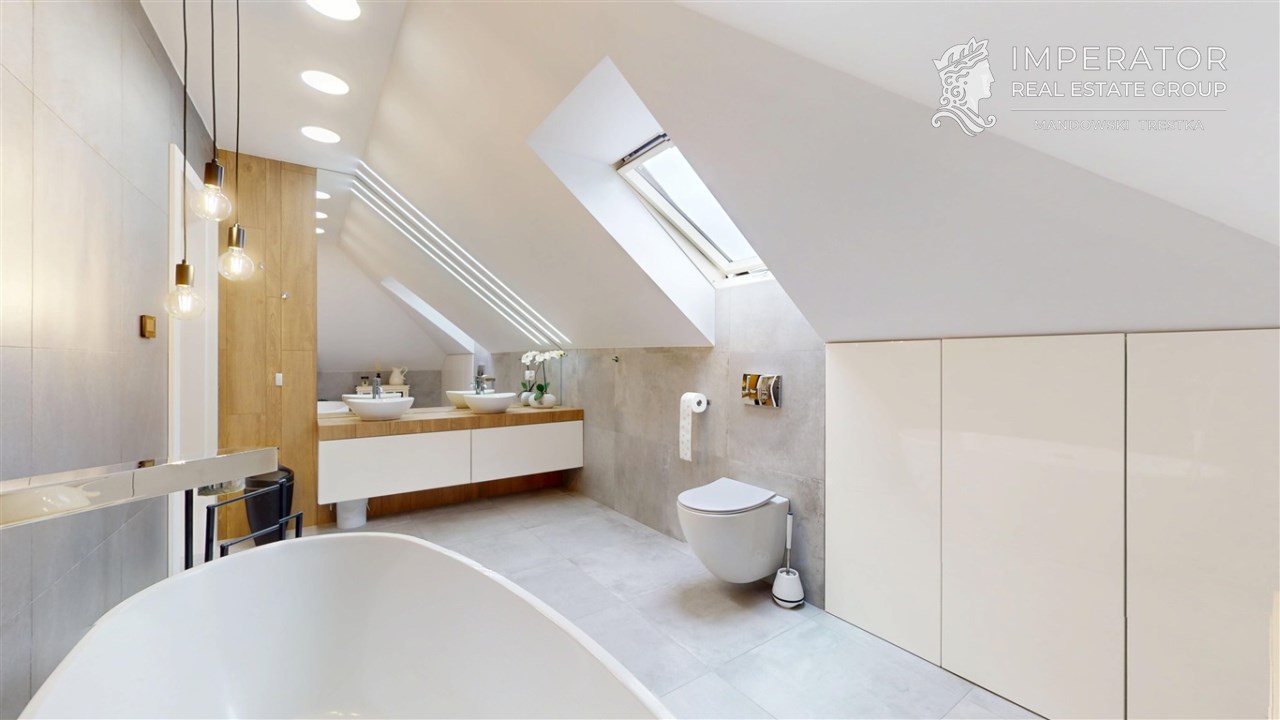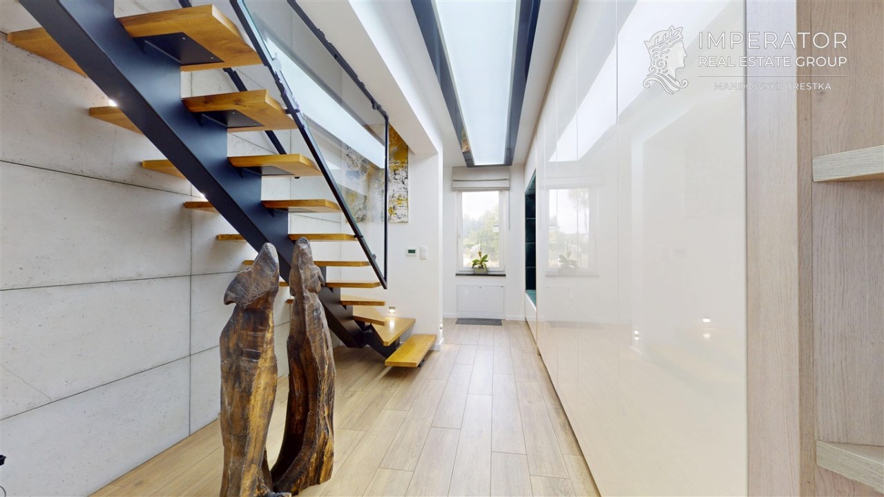 Wysokiej jakości materiały zostały wybrane z myślą o użytkowaniu nieruchomości w celach prywatnych przez właścicieli. Dom ten został wybudowany w 2019 r. i w pełni wykończony w 2020 roku. Cała przestrzeń nieruchomości jest funkcjonalnie zaprojektowana oraz bardzo dobrze doświetlona. Kuchnia jest w pełni wyposażona w najwyższej jakości sprzęty AGD. We wszystkich pomieszczeniach znajduje się wysokiej klasy podłoga, włoskiej produkcji.
