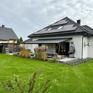 Taras, zielony i puszysty trawnik, w pełni oświetlona nocną nieruchomość zapewnia doskonałe miejsce do relaksu i zabawy. Nad całym tarasem zamontowana jest nowoczesna markiza - pergola sterowana elektrycznie, zapewniając a komfortowy cień i ochronę przez słońcem.