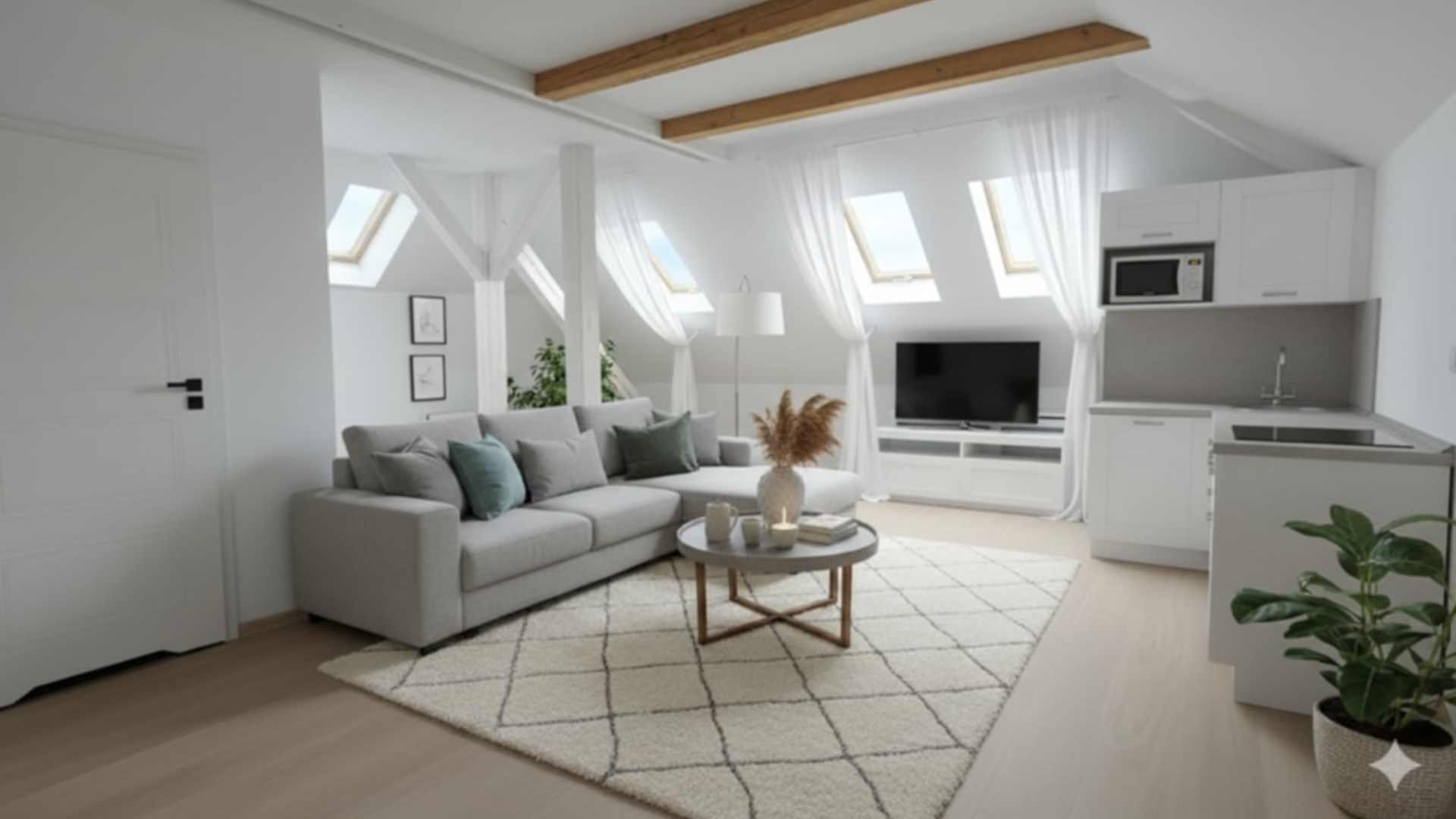 MIESZKANIE o metrażu 65m2 powierzchni po podłodze, 38m2 zgodnie z pełną wysokością SKŁADA SIĘ Z: