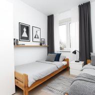 Na podłogach położone zostały panele podłogowe. Została poprowadzona pełna elektryka, a łazienki są już wyposażone w armaturę: wanna / prysznic, umywalka, krany, WC / bidet.