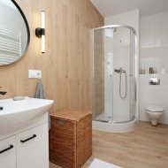 Na podłogach położone zostały panele podłogowe. Została poprowadzona pełna elektryka, a łazienki są już wyposażone w armaturę: wanna / prysznic, umywalka, krany, WC / bidet.