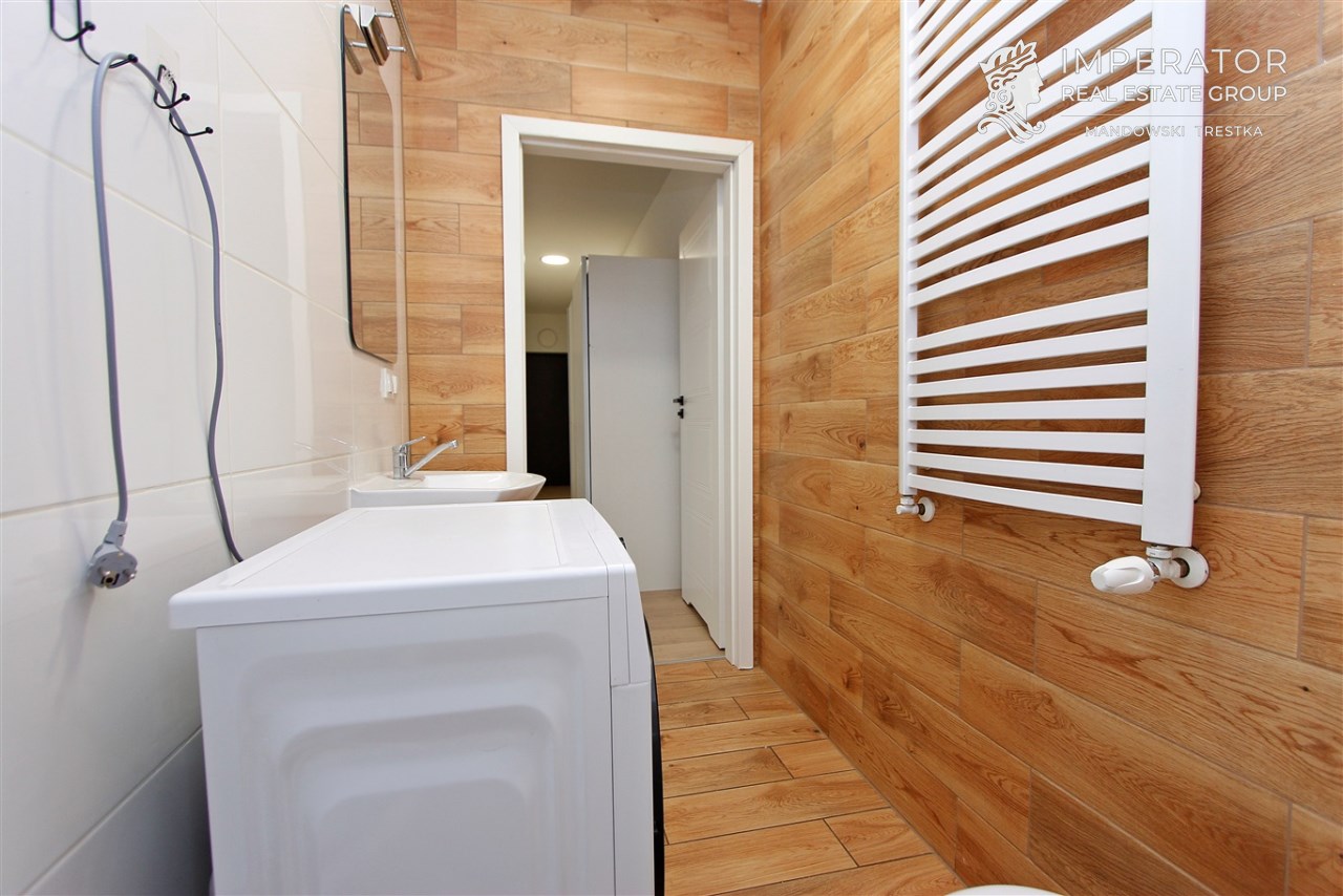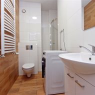Na podłogach położone zostały panele podłogowe. Została poprowadzona pełna elektryka, a łazienki są już wyposażone w armaturę: wanna / prysznic, umywalka, krany, WC / bidet.