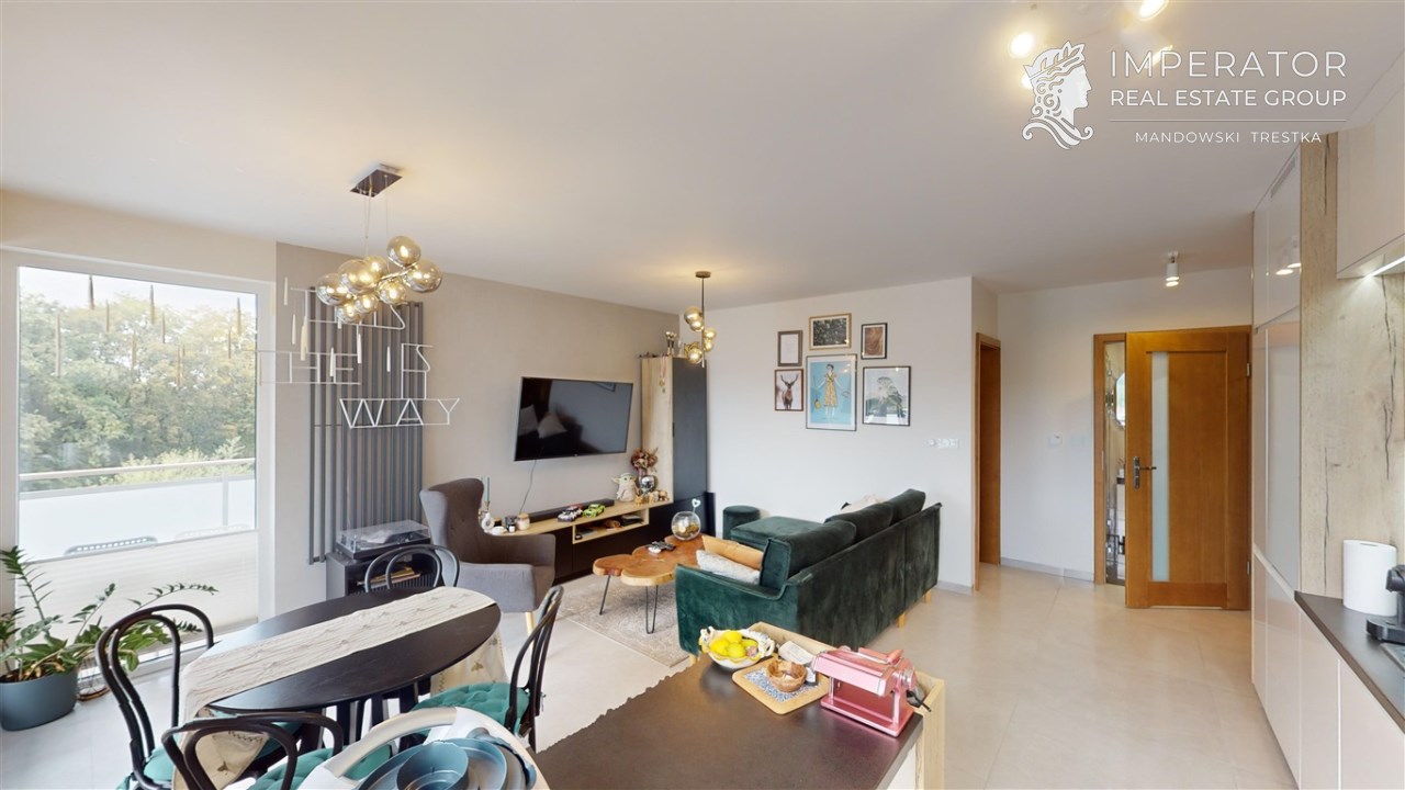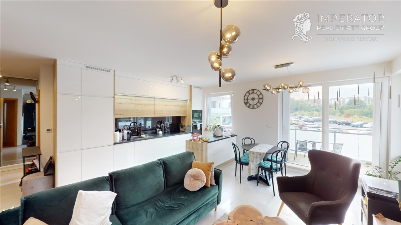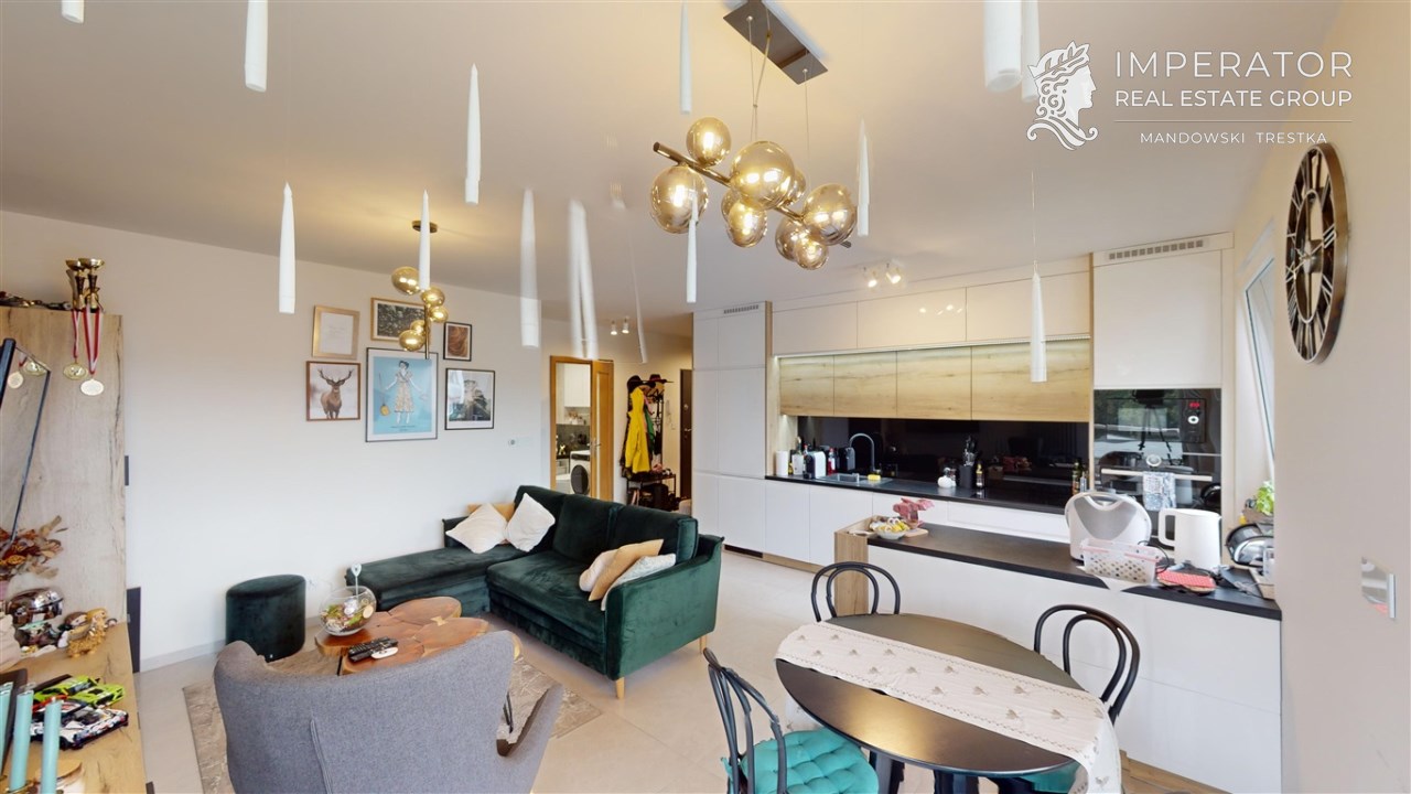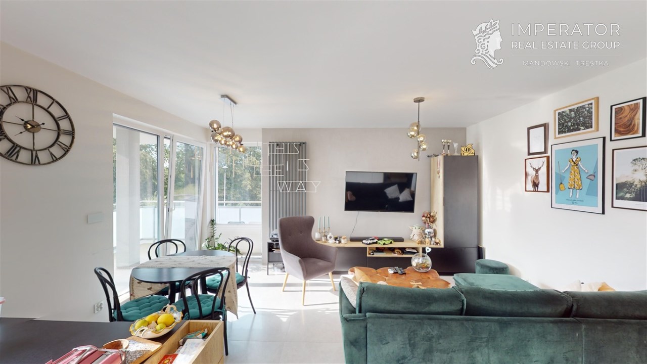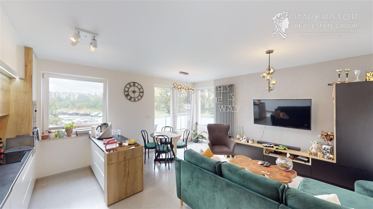 Mamy przyjemność zaprezentować Państwu nowo wybudowane, funkcjonalne 3 pokojowe mieszkanie o powierzchni 58 m2, z dużym tarasem, zlokalizowane na wysokim parterze nowopowstałego apartamentowca znajdującego się na zamkniętym osiedlu Green Park na Sarnim Stoku.