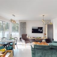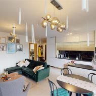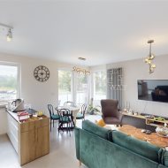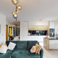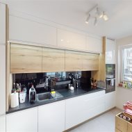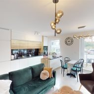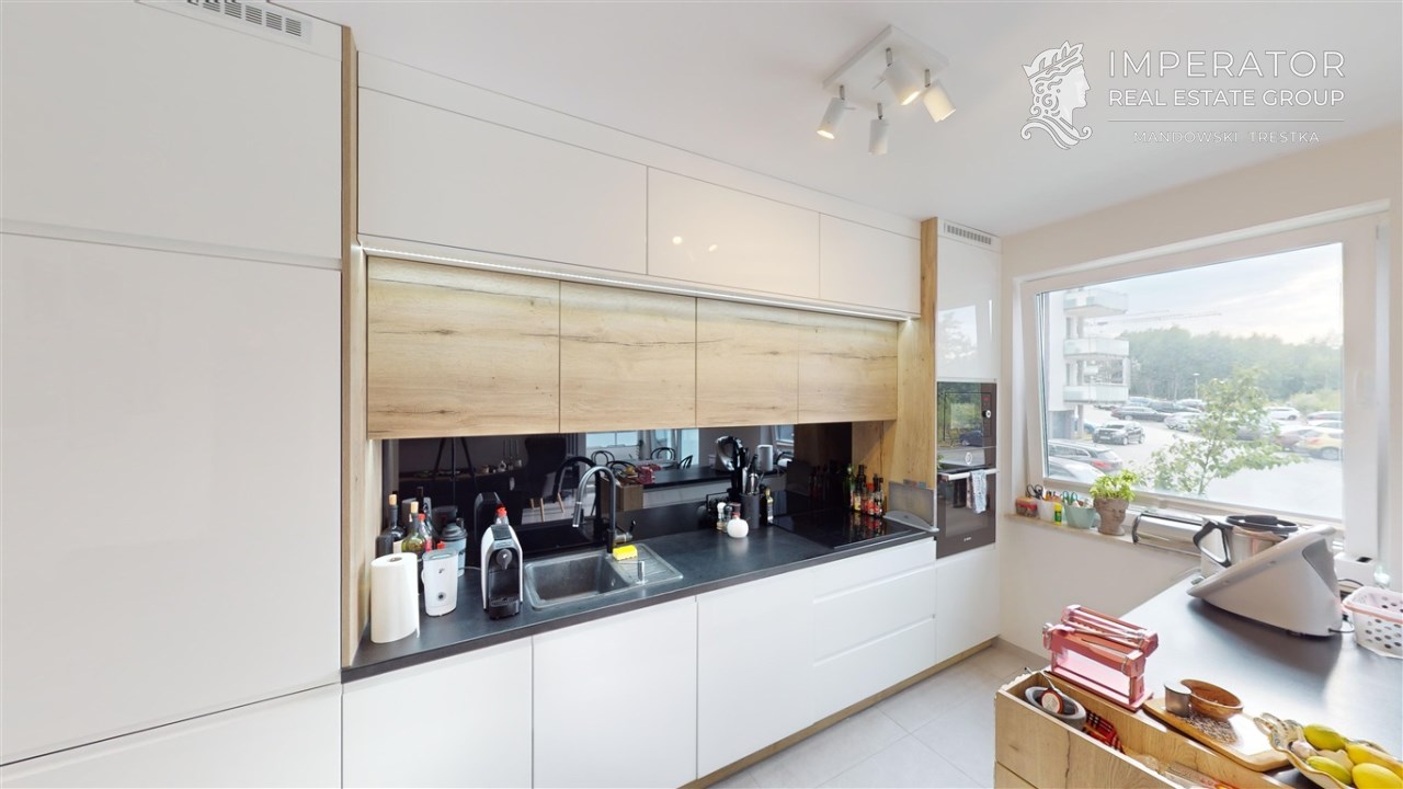 - przestronny salon z aneksem kuchennym (z bezpośrednim wyjściem na taras) - kuchnia na wymiar, płyta indukcyjna, piekarnik, mikrofalówka, zmywarka zabudowana, zlew z baterią, zabudowana lodówka i zamrażalnik, mnóstwo przestrzeni do przechowywania;