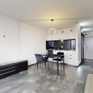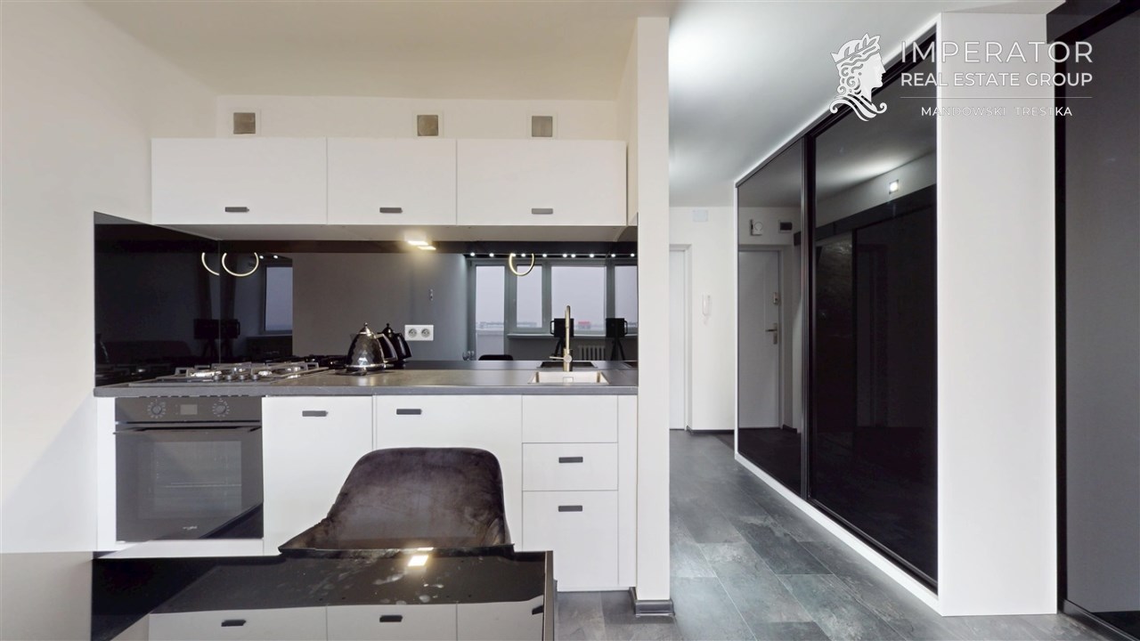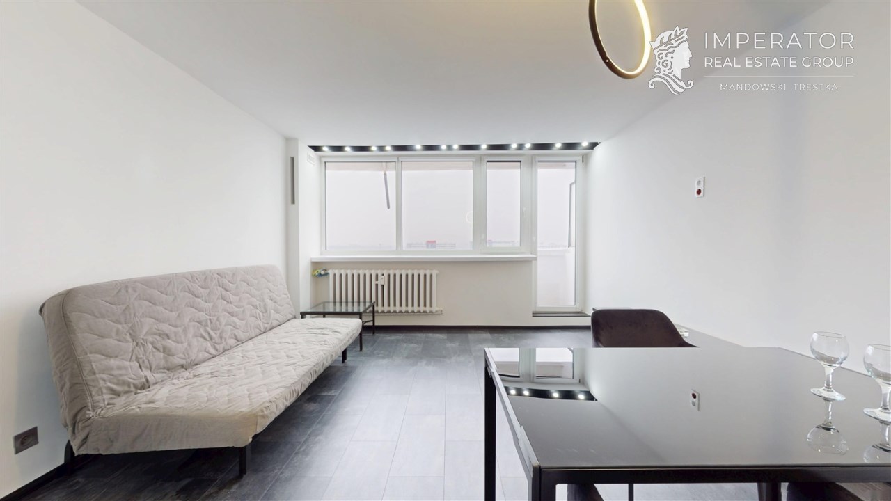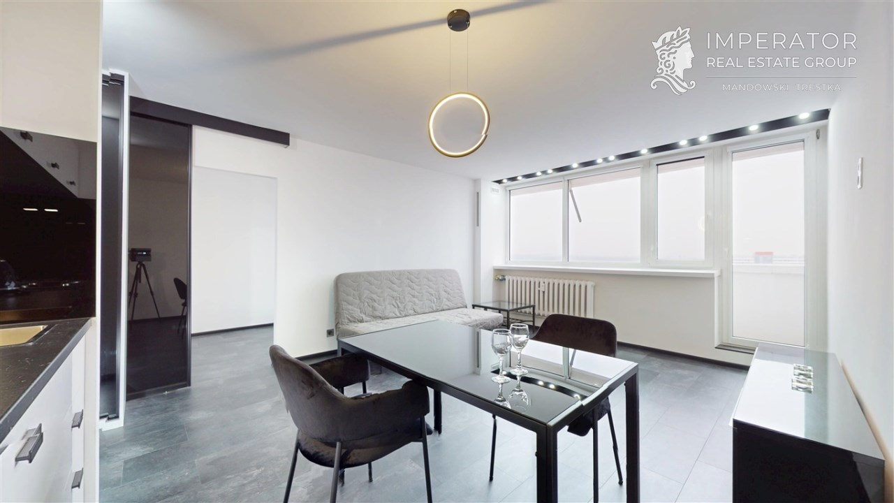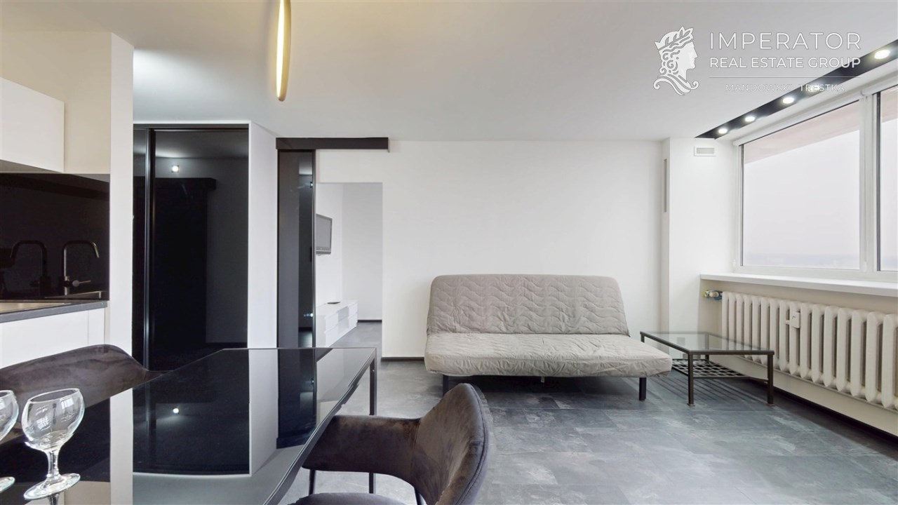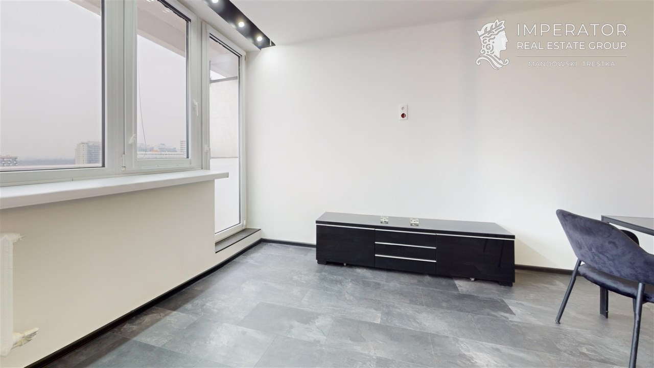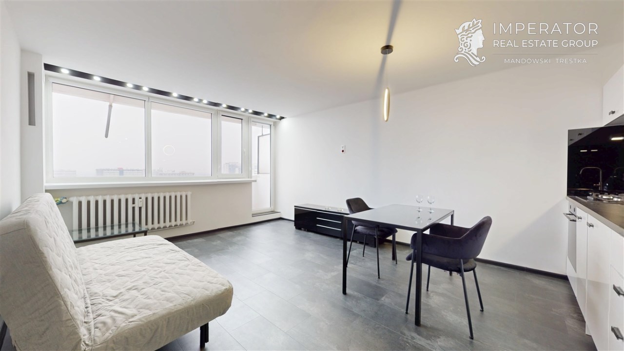 Do wynajęcia nowoczesne, w pełni wyposażone mieszkanie o powierzchni 38 m², dwupokojowe: salon z aneksem kuchennym oraz sypialnia, całe świeżo po generalnym remoncie, zlokalizowane na 13. piętrze z widokiem w zadbanym bloku z 3 windami