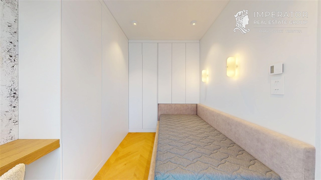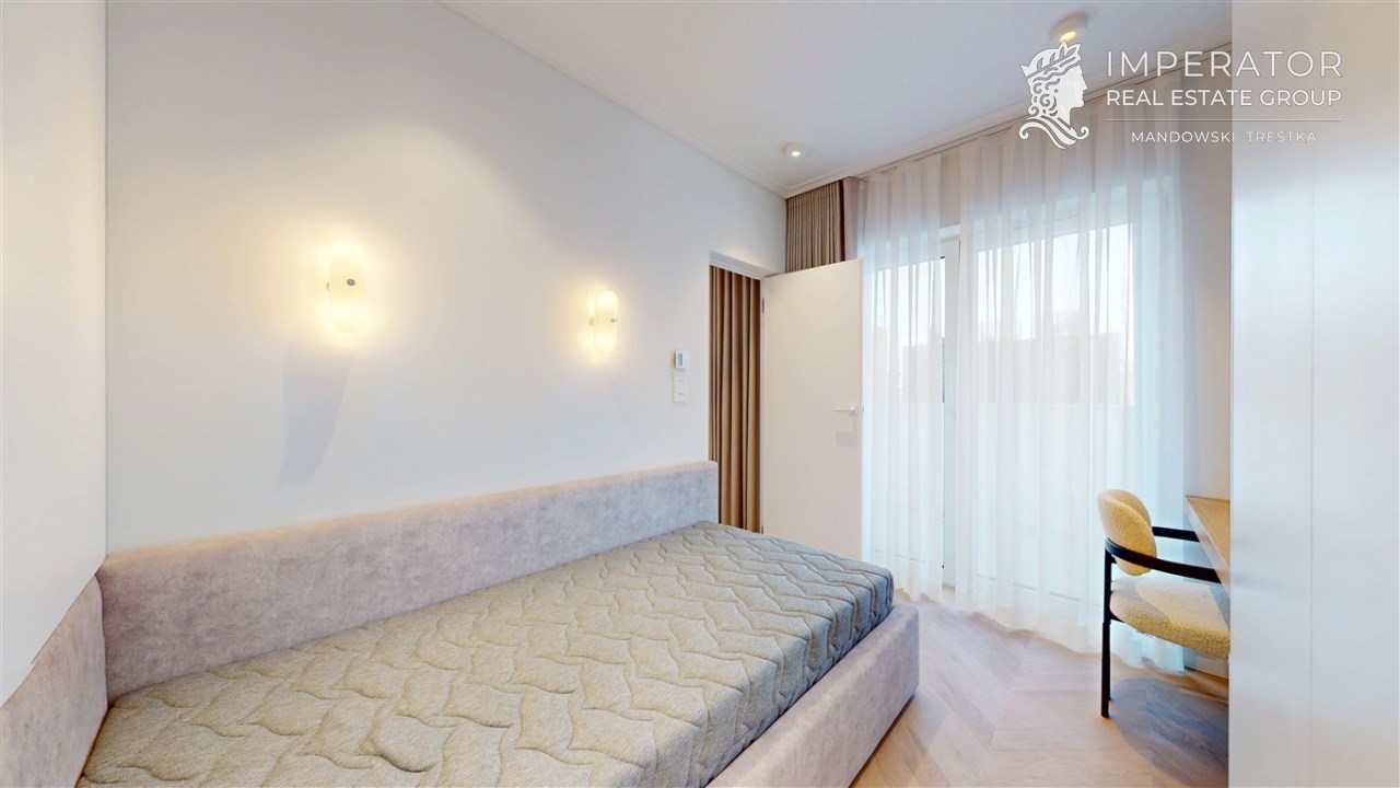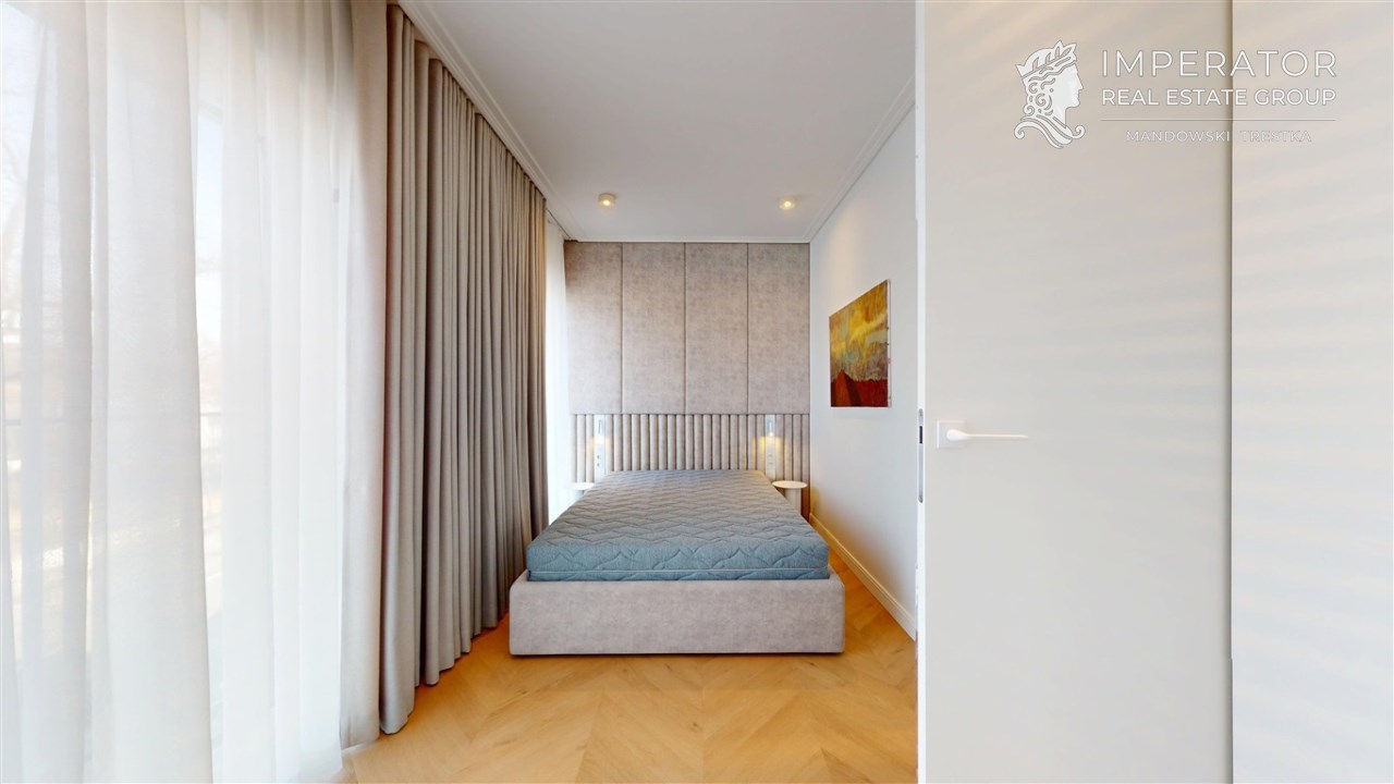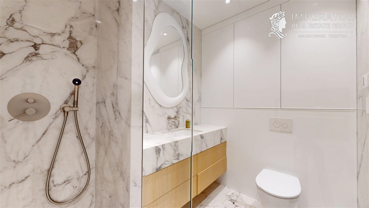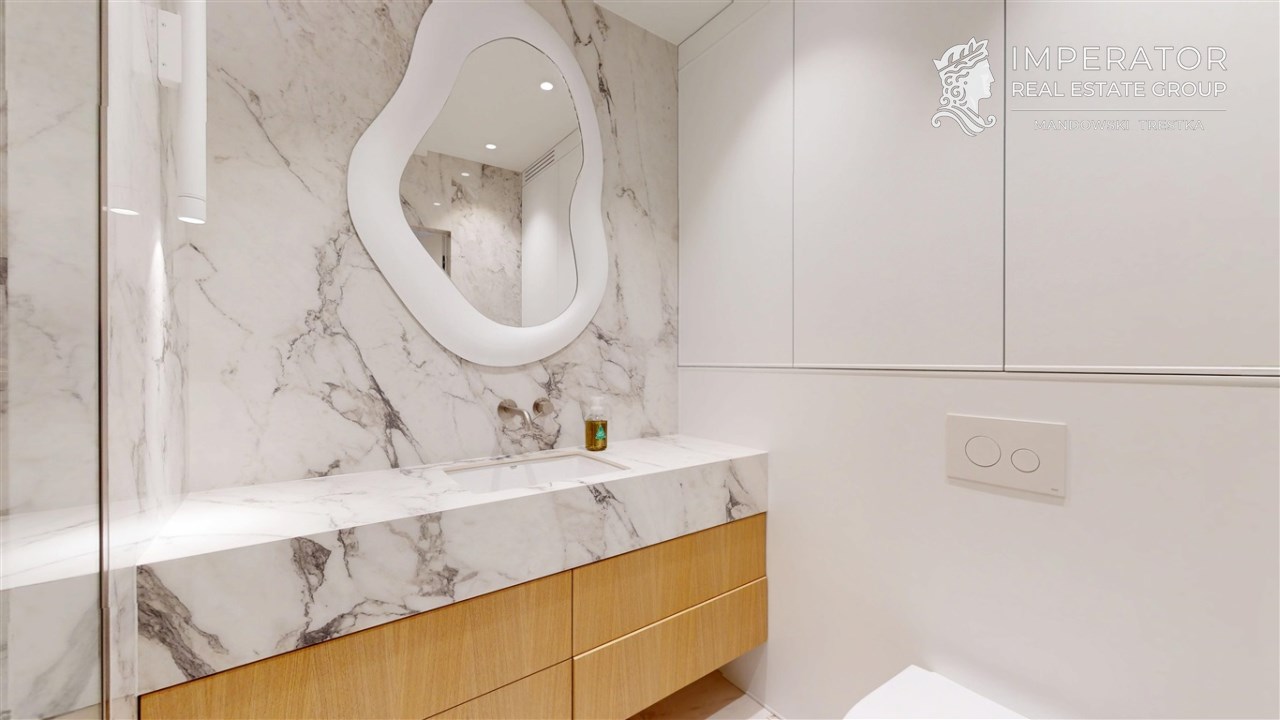 Mieszkanie zachwyca elegancją, szlachetnością materiałów oraz harmonijną aranżacją oraz wyposażeniem absolutnie najwyższej jakości. Dla codziennego komfortu wynajem następuje z miejscem parkingowym w podziemnej hali garażowej.