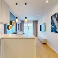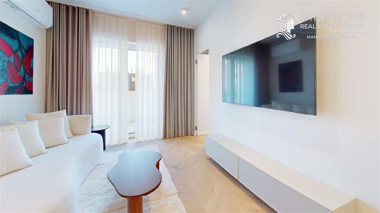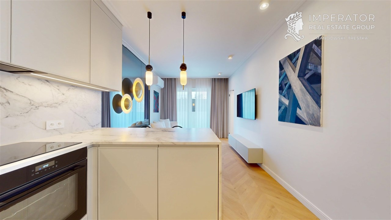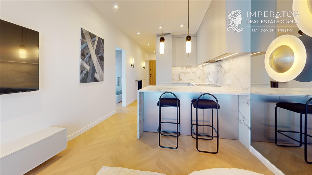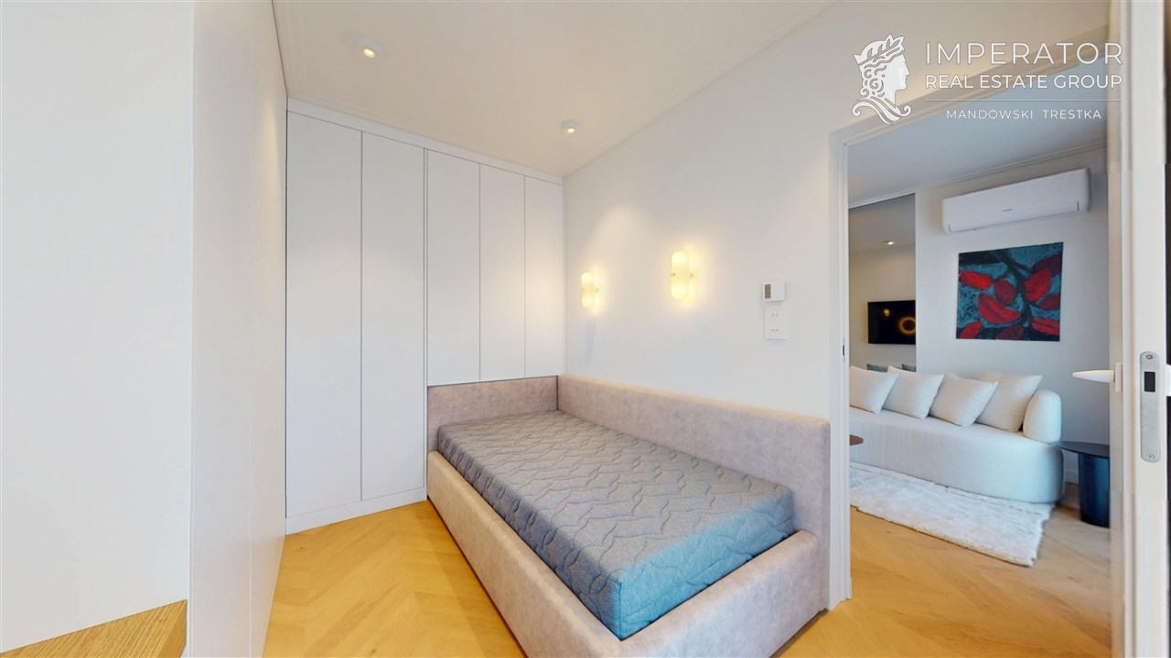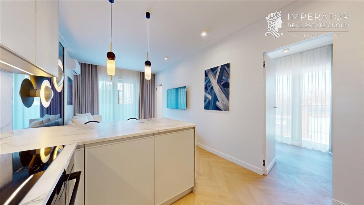 Mieszkanie zachwyca elegancją, szlachetnością materiałów oraz harmonijną aranżacją oraz wyposażeniem absolutnie najwyższej jakości. Dla codziennego komfortu wynajem następuje z miejscem parkingowym w podziemnej hali garażowej.